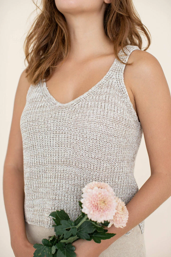 Seasons Knitwear breathes with you. Designed to soften the challenges of everyday life, this light knit falls beautifully into a flattering shape for any body. Not too loose or too tight, this Singlet is effortless style for daily life. Matches perfectly with the Helga pants.