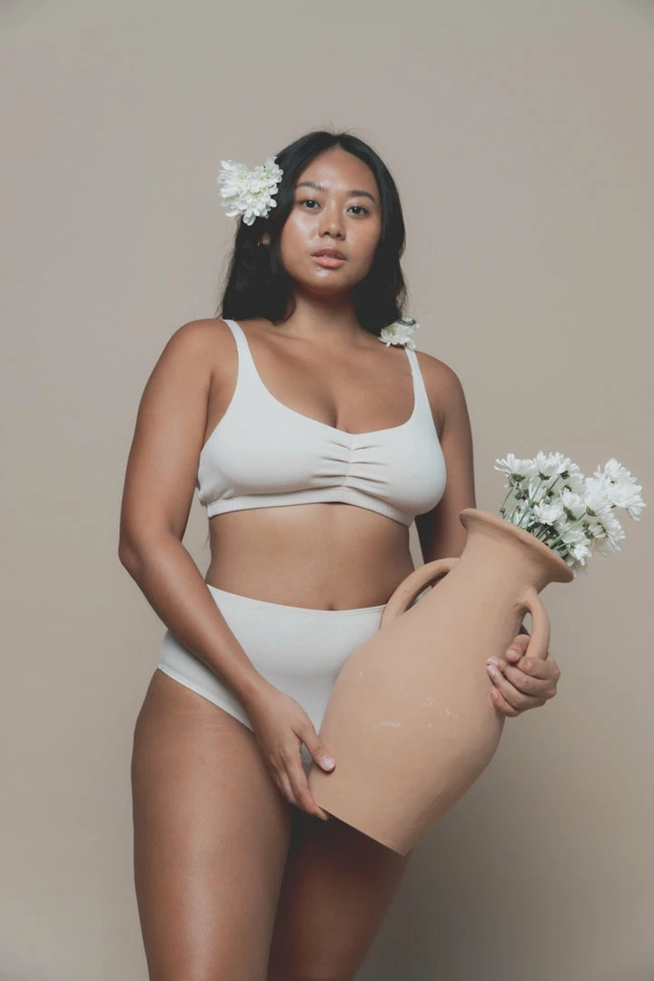 Inspired by the colours of pink roses and daffodils, we made our new Layla intimates as a colourful and more affordable option to our Plant Dyed intimates.ย