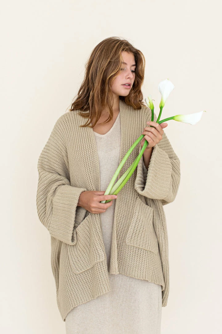 Our New Tuula Poncho is here! She is inspired by the warm embrace of our Finnish Grandmother. We have kept its original oversized shape with its dropped shoulders. We have thoughtfully re-designed some elementsΒ and it is still ethically knitted in Bali from deadstock acrylic yarn that would otherwise have gone into landfill.